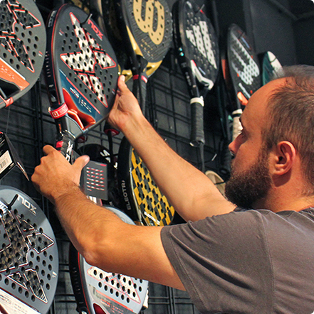 Venha conhecer os nossos especialistas diretamente na nossa loja de Vallauris, no coração da Costa Azul. Aqui encontrará uma vasta seleção de raquetes de padel, calçado, sacos, vestuário e acessórios de padel. Os nossos especialistas aconselham-no de acordo com o seu nível, utilização e orçamento.